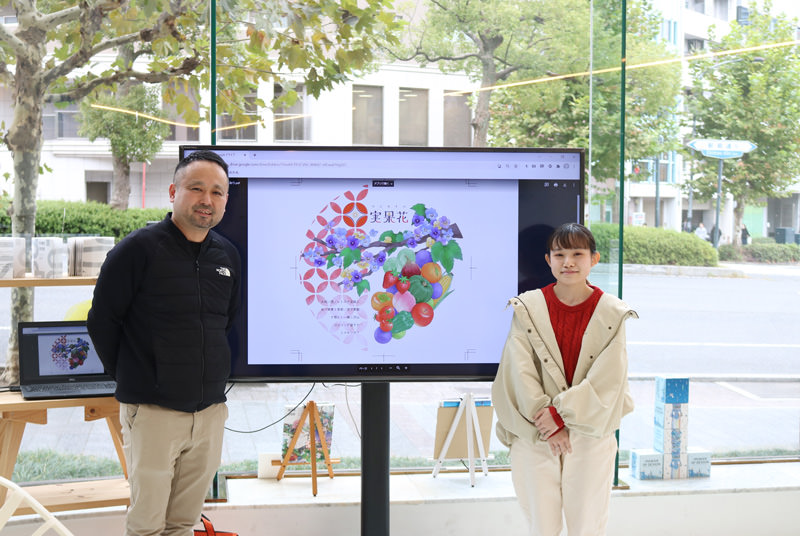 果青園サワダさんの商品「実果花」(ハナカジツ)のロゴとメインビジュアルをグラフィックデザイン学科の在校生、胡さんが担当しました。