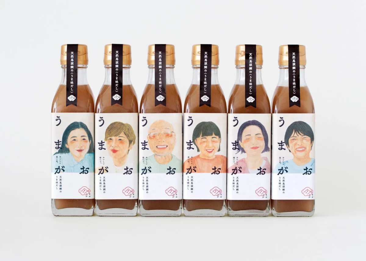 島根県浜田市の郷土魚である馬頭鯛(まとうだい)からつくったうま味だしを「うまがお」と銘打って、リブランディングを行ったプロジェクト。元々は、地元で「バトウの万能だし(バトウ=馬頭鯛の地元名)」という商品名で販売していましたが、県外の方には何か分からないという課題に直面しました。そこで、認知の低い馬頭鯛を使用した商品の魅力を最大限アピールするべくデザイン開発が行われました。