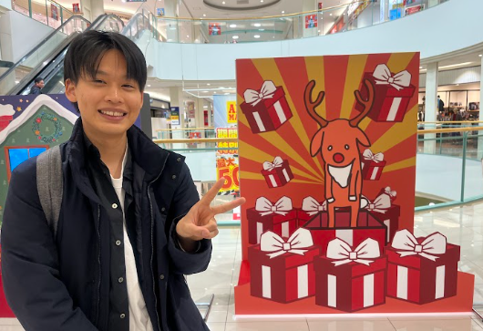 イズミ・ゆめタウン広島(南区皆実町2丁目)に学生がデザインした、クリスマスフォトスポットができました。学内でデザインコンテストが開かれ、38作品の中から、グラフィックデザイン学科2年・山田開智さんのデザインが選ばれました。