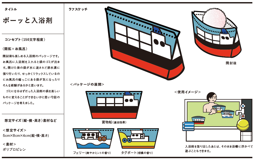その事で、入浴剤の袋(パッケージ)がゴミになる」という気づきは大きな発見でした。