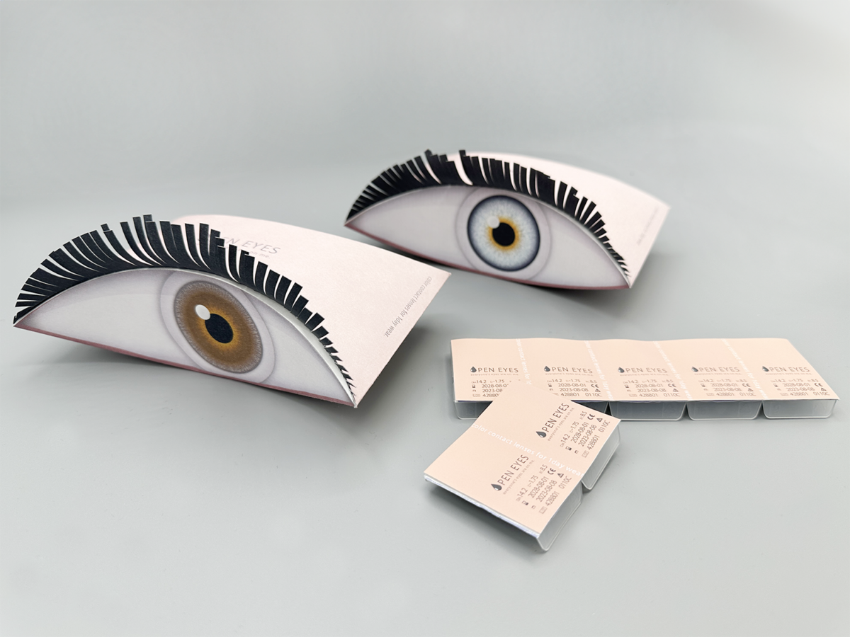 目をテーマにしたカラーコンタクトレンズのパッケージ