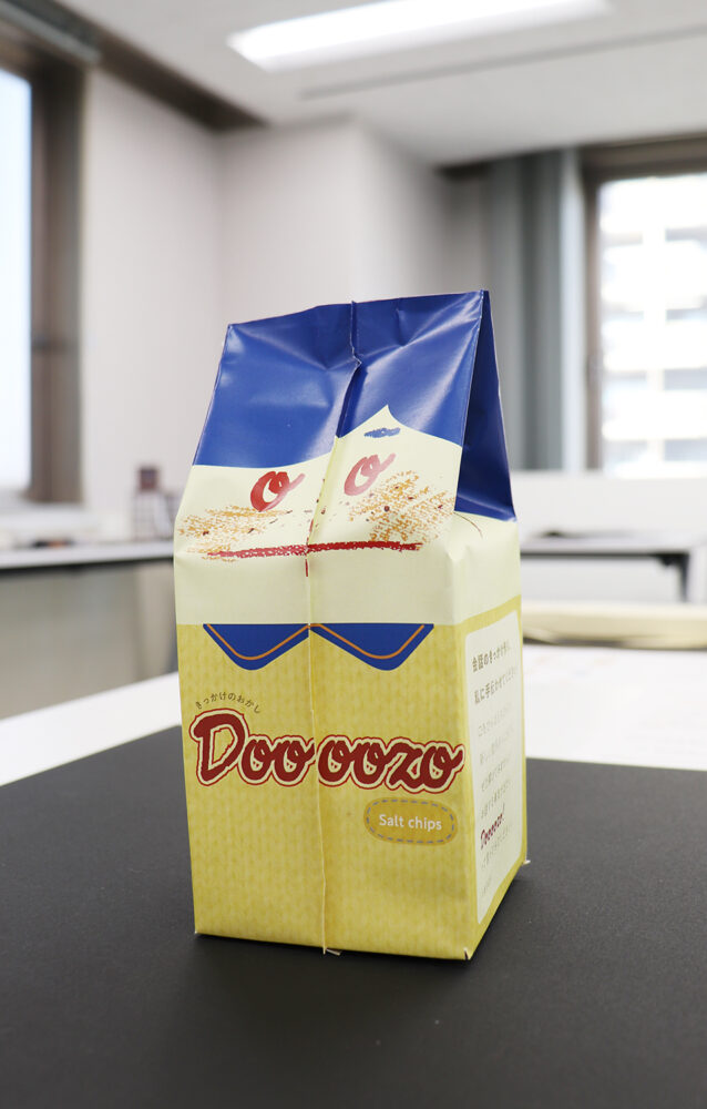 その後、授業で全員でパッケージのモックアップ(立体見本)を制作しました。