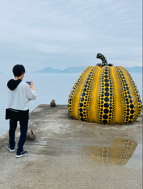 直島と言えば!の草間彌生さんの黄色いかぼちゃとも、海辺で無事遭遇。