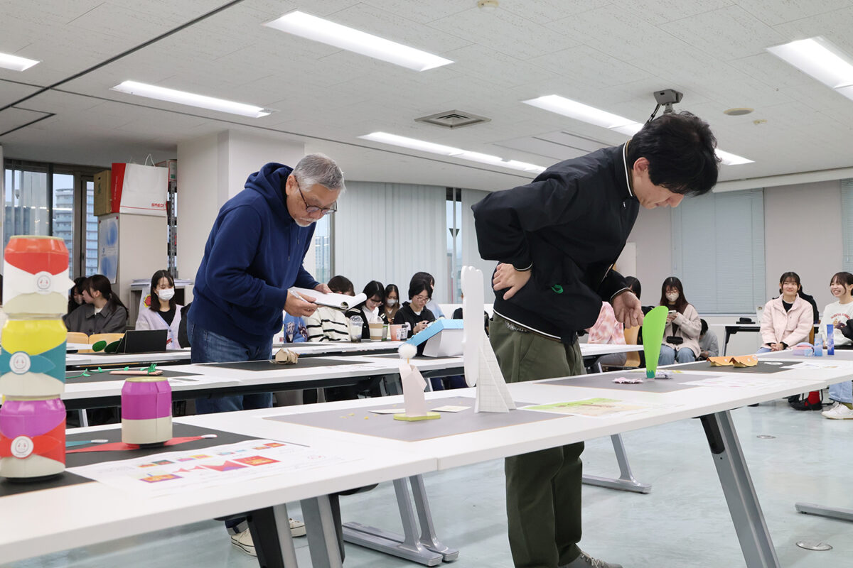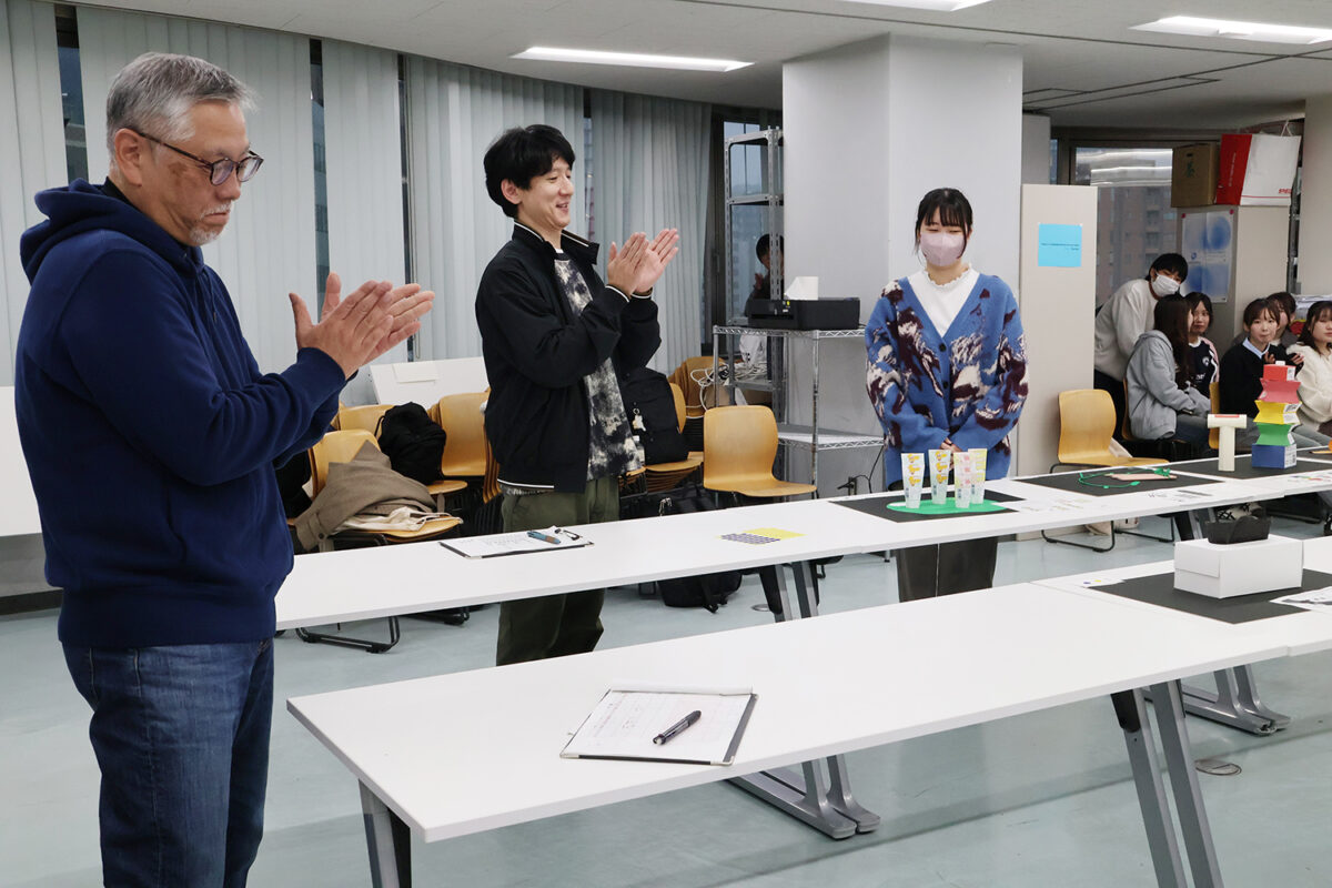 今回は、広告論の授業を担当されている清水先生と、アドバタイジングなどの授業を担当する瀬古先生が、審査を担当してくださいました。