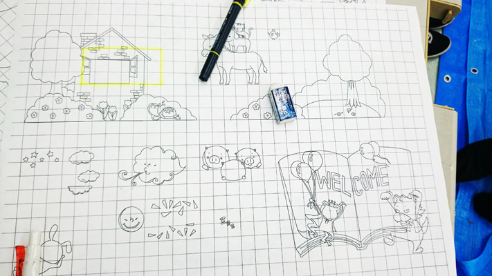 このグリッドの入った線画を元に皆で下描きをしていきます!