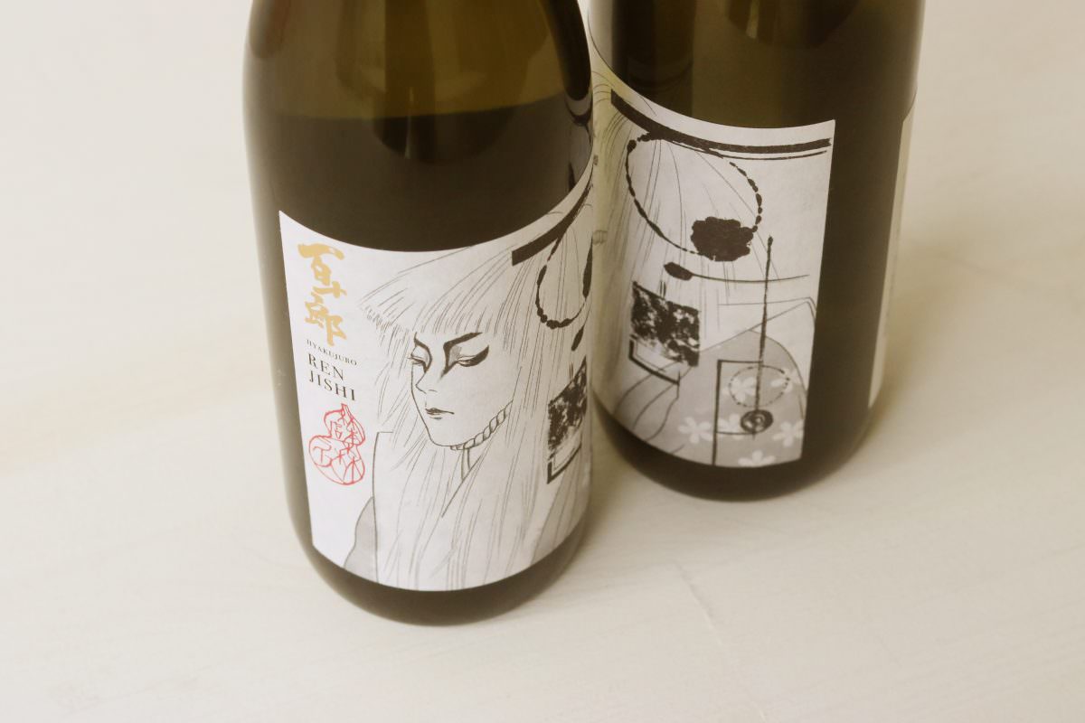 酒商山田さんのコンセプトワーカーシリーズ「百十郎」のリニューアル。歌舞伎役者の百十郎のイラストは“アニメにならないギリギリの大人っぽいタッチで”という難題を弊社、穴吹の卒業生の藤本が担当し、この感度の高い書は安田女子大学を昨年卒業した井ノ下千夏さんの手によるもの。女性ユーザーを意識しましたが下手すると、オタクぽくなるギリギリのチャレンジングな企画でした。この「百十郎」は3部作あり初回のRENJISHIが2019年7月11日リリースされました。この後KEWAI、SUKEROKUが続く予定です。