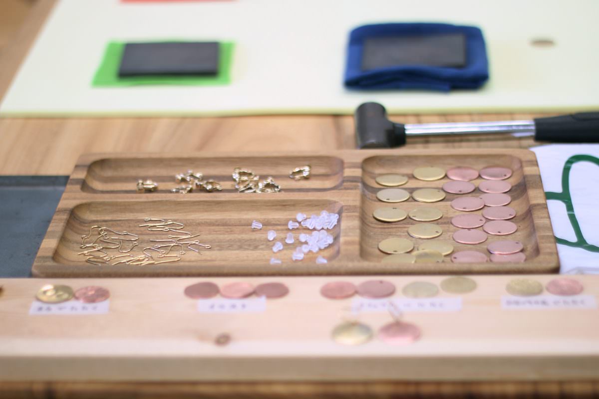 前回は木製のバードコールで公園中を鳥のさえずりで満たした NANAMEUE が,今度は槌音を響かせます!槌音というと,少々おっかないかもしれませんが,ワークショップ&販売で扱うのは,アクセサリー.銅や真鍮といった,鈍い色合いが魅力の金属を叩いたり削ったり加工して,オリジナルのアクセサリーに仕上げます.