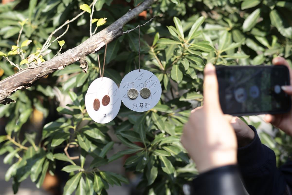 台紙が果物みたいで可愛い!と評判です。体験されたお姉さま方が近くの木にぶら下げて"映え撮影"をしてくださいました!
