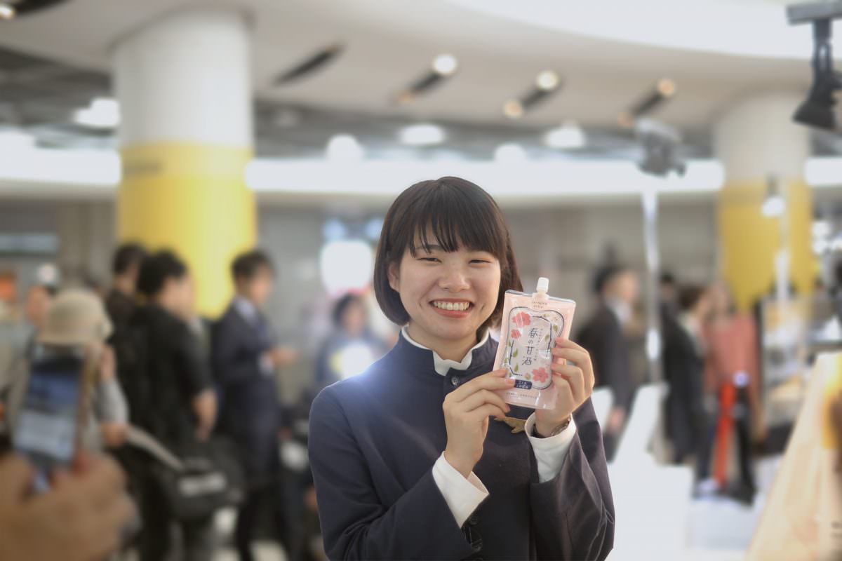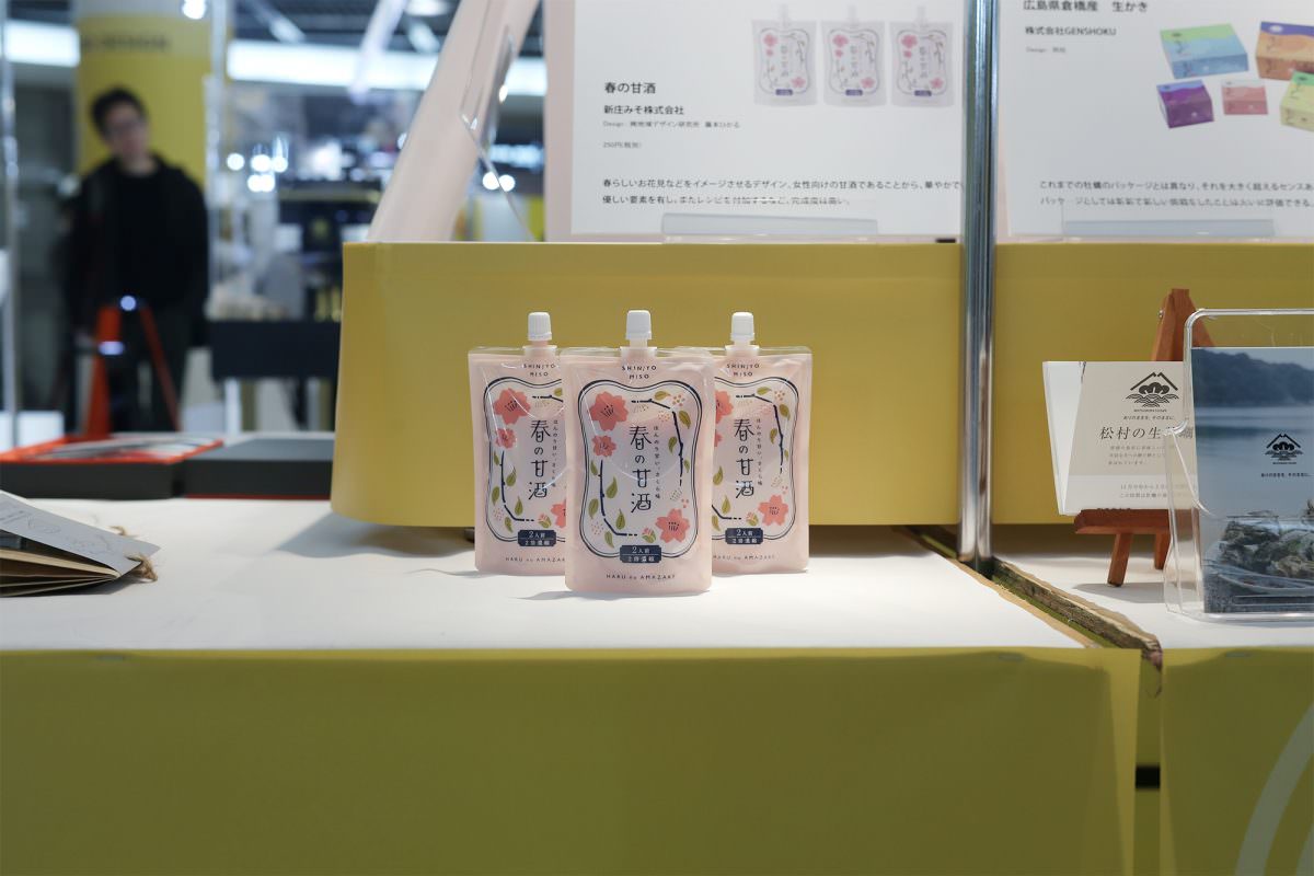 卒業生も負けていません!納島先生率いる地域デザイン研究所のスタッフ藤本ひかるさんのお仕事「春の甘酒」も受賞。繊細なイラストが得意な彼女が、商品の魅力を伝えるパッケージを仕上げています。