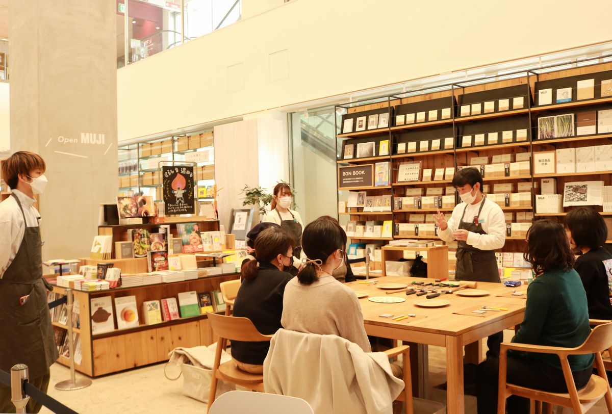 11/19(土) 本校内にあるショップ「NANAMEUE」が無印良品 広島パルコ店で、出張ワークショップを行いました。