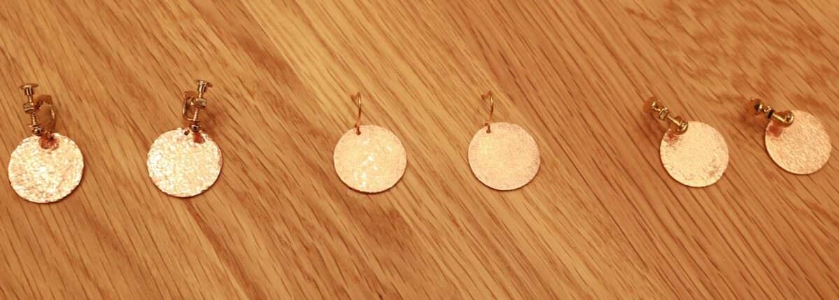 叩いた模様によって輝き方が異なる、世界にたった一つのピアス・イヤリングです。