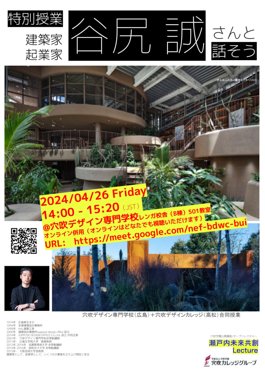 本校卒業生で、建築家・起業家の谷尻誠さんをお招きして、特別授業が開催されます。 一般の方は、オンラインにてご視聴いただけます。 ぜひご覧ください。