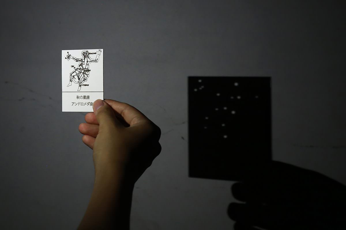 光を当てるとプラネタリウムになる新しい遊び方を模索する「星座カルタ」。学生の柔軟なアイデアにはいつも驚かされます。