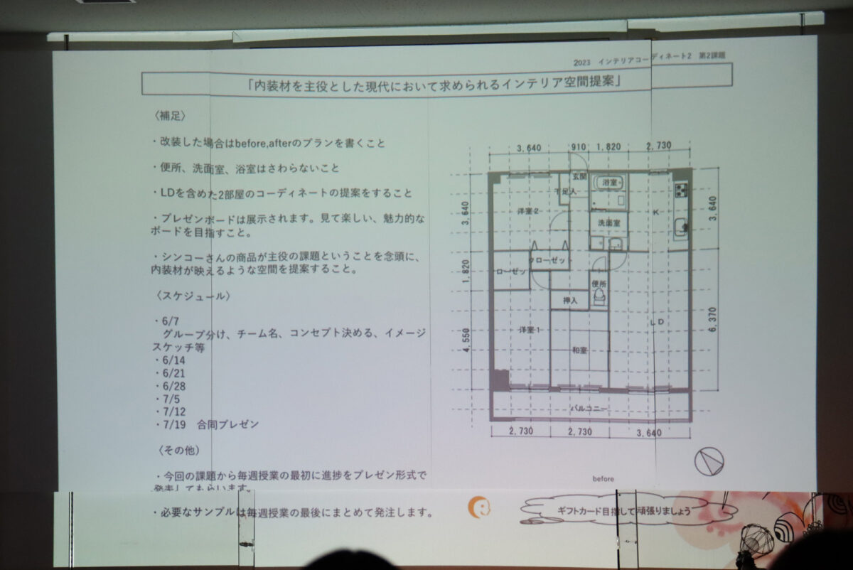 シンコー広島株式会社様の商材を使用したインテリア空間を提案するプレゼンが行われました。
