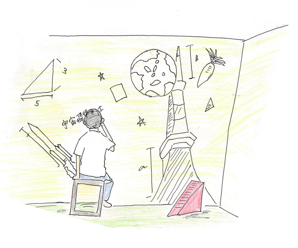 岩本)ホワイトボードはどこにでもあって、面白くないかなと。こどものときって黒板は先生が使うものだから、チョークで自由に描けることはなかったと思うんです。それができるってワクワクすると思って、このチョークで描ける壁紙にしました。とお答えました。