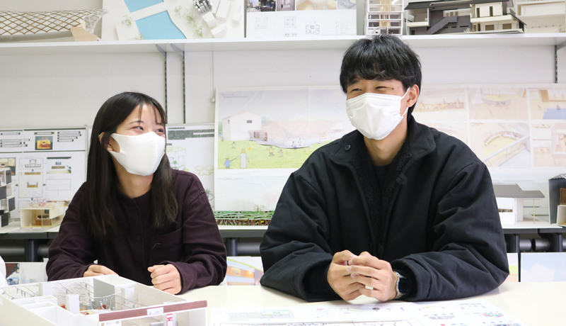三浦)私が先生にコンペに参加しないかと声をかけてもらったときに、コロナもあってあまりお話できていない1年生と一緒にやりたいって伝えたんです。そうしたらやりたいって言ってくれたメンバーの中に岩本君がいました。そのとき光岡さんは迷ってたんだよね。