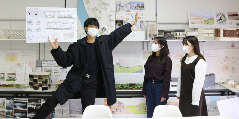 今回受賞したのは、インテリアデザイン学科2年生の三浦さん、1年生の岩本さん、光岡さんです。