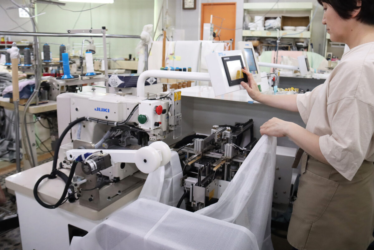 丁寧に耳縫いをして、アイロンをかけていきます。