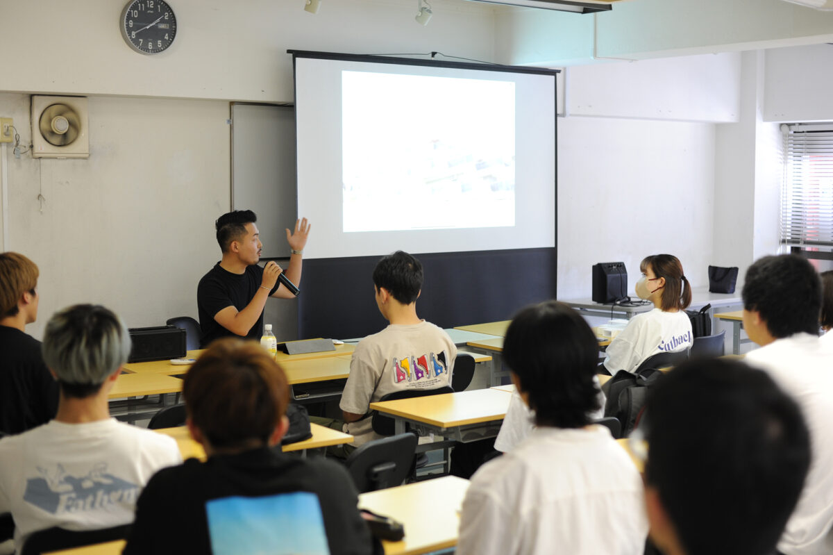 本日、当校講師の山根先生の繋がりでお招きし、建築学科・インテリアデザイン学科の学生に対し現在の仕事を始めるに至った経緯や、ビンテージマンションの持つ魅力、心がけている事などを90分にわたりお話いただきました。