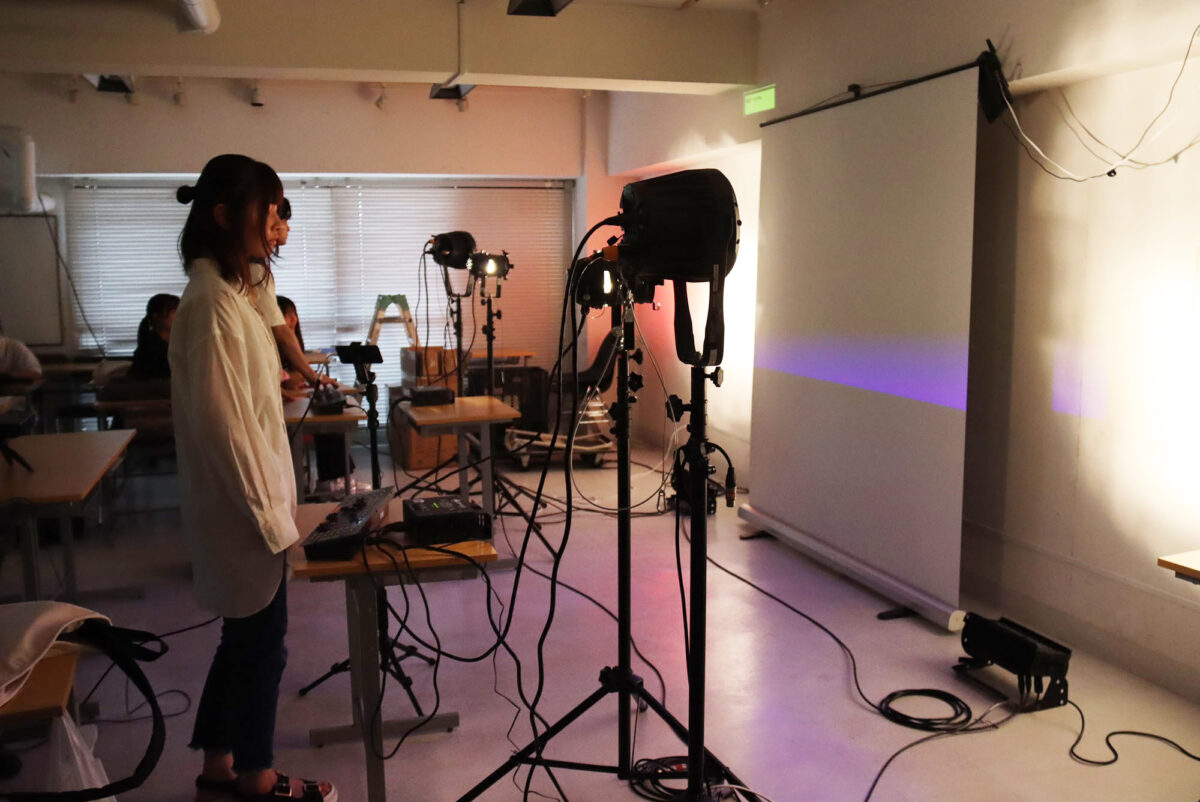 インテリアデザイン学科の学生が、照明デザインの授業で舞台照明の操作にチャレンジしました。