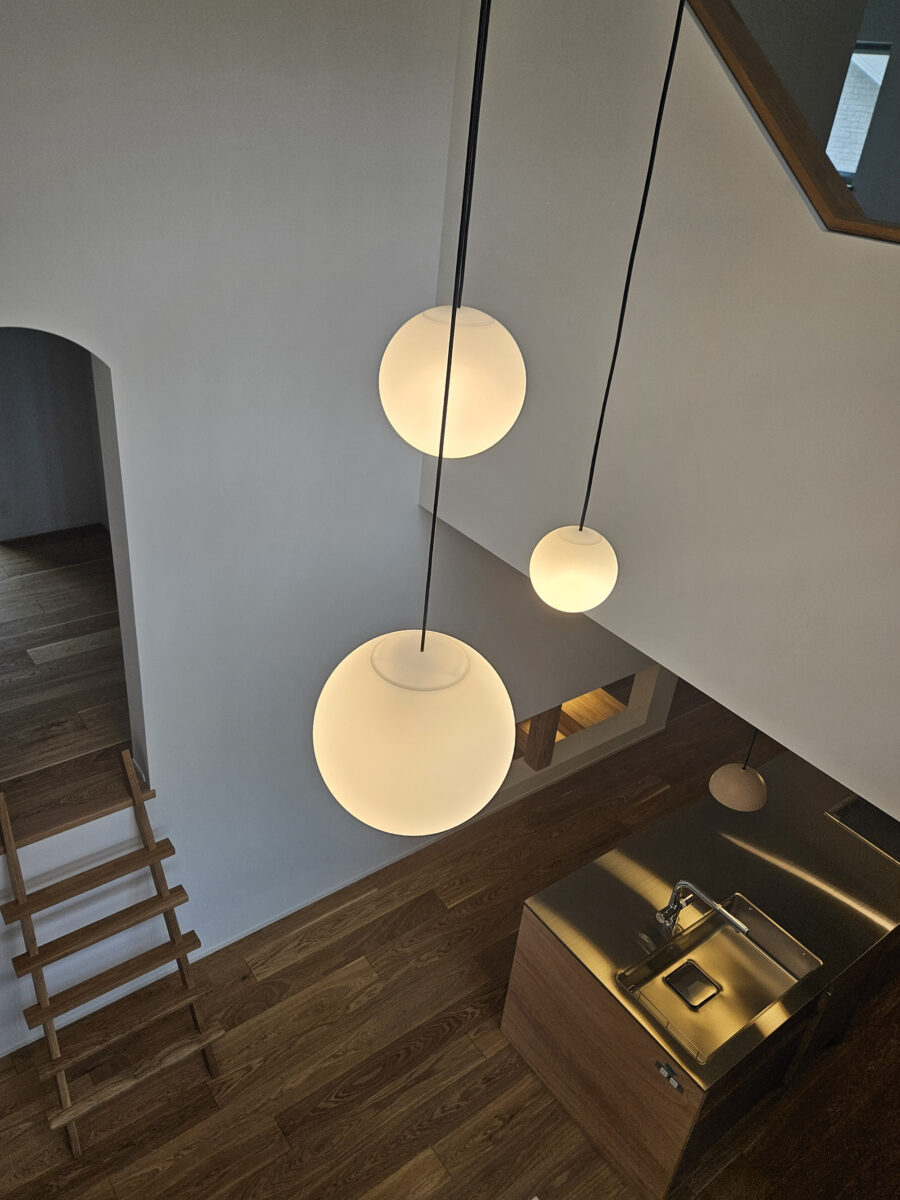 照明器具も丸みを帯びたデザインで統一され、あたたかみを演出してくれています。