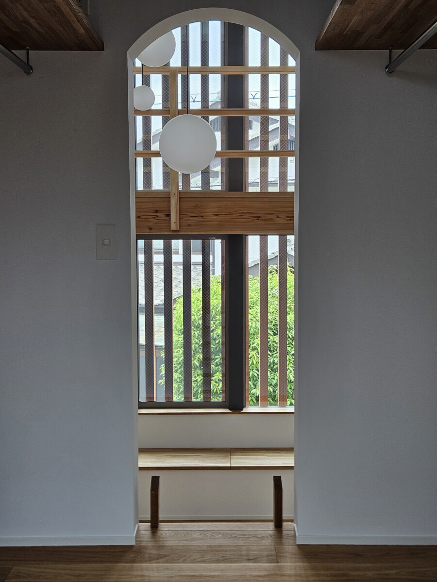 また、エントランスからはダイニングルームが見える小窓があり、下から見るとプライベート部分がしっかり隠せる角度ですが、上から見下ろすと来客された方の様子がうかがえる造りになっています。