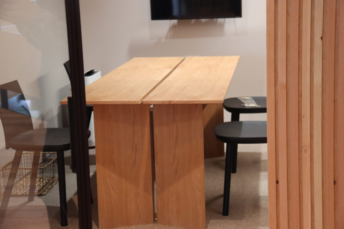 ミーティングルームで使用されているテーブルは岩竹先生が設計デザインされたものだそうです!