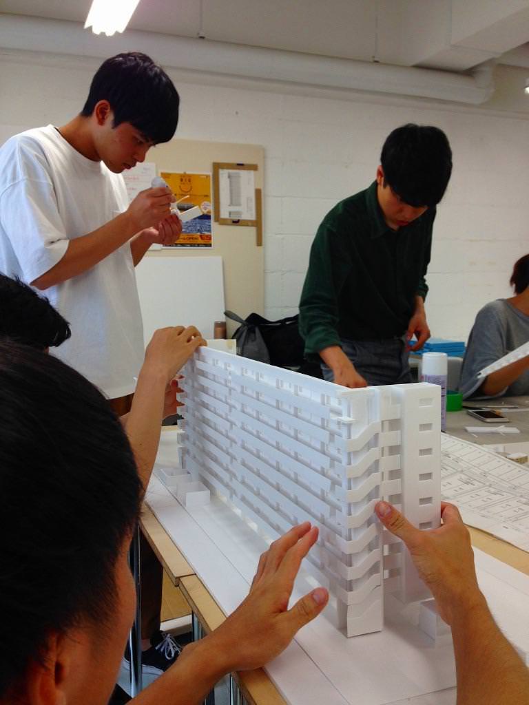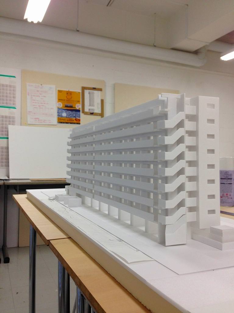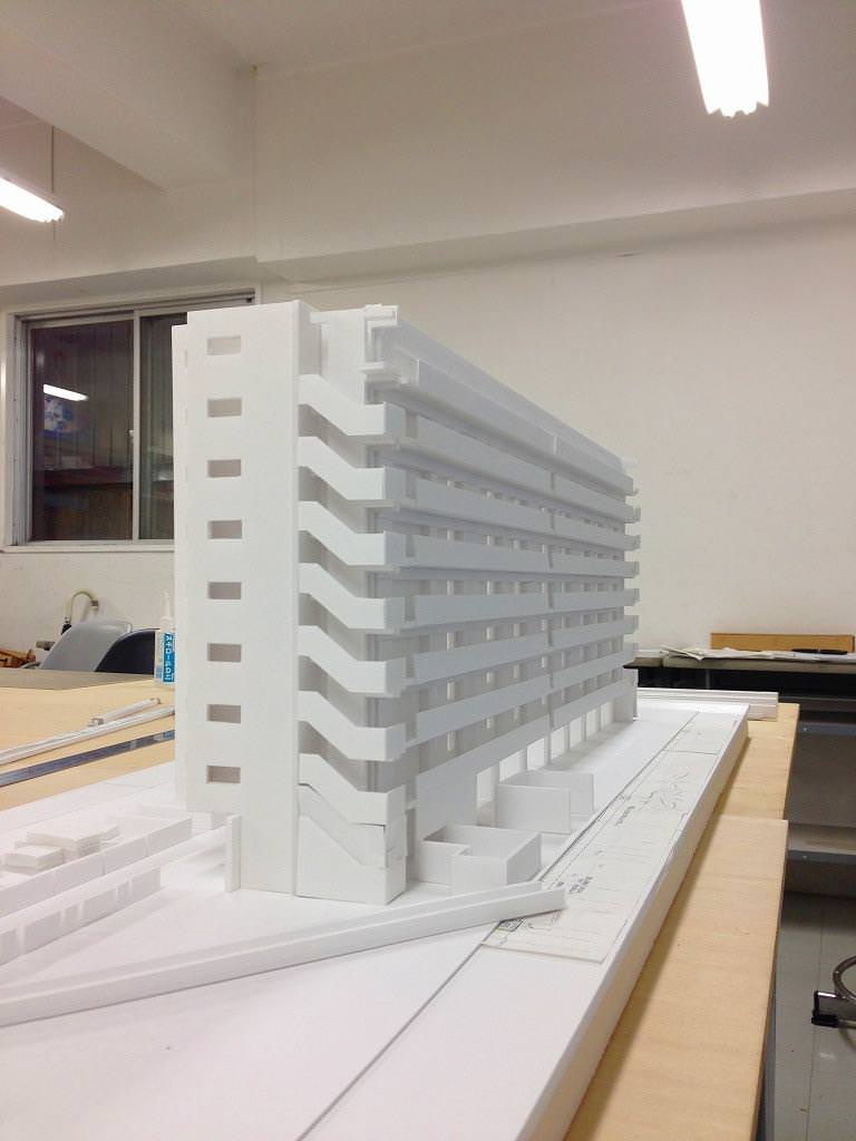 それで,現在その一つとして「あなぶき興産」さまの依頼を受けて,これから建設が進められる安芸郡海田町に建つマンションの全体模型をグループ制作しています.