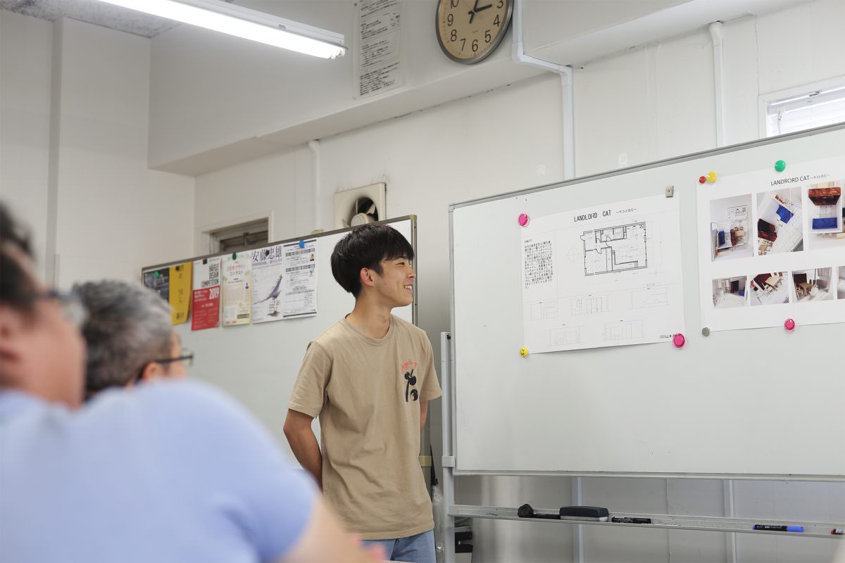 「猫」の感じる心地よさを考えることって、ある意味「人」のことを考える以上に難しいのでは?!プレゼンテーターは学生ならではのアイデアやこだわりたいポイントを次々に解説していきます。