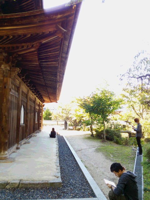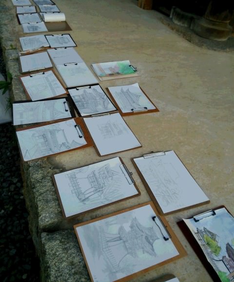 建築学科、インテリアデザイン学科1年生合同授業「空間表現基礎」で広島市内の国宝不動院へスケッチに行ってきました。
