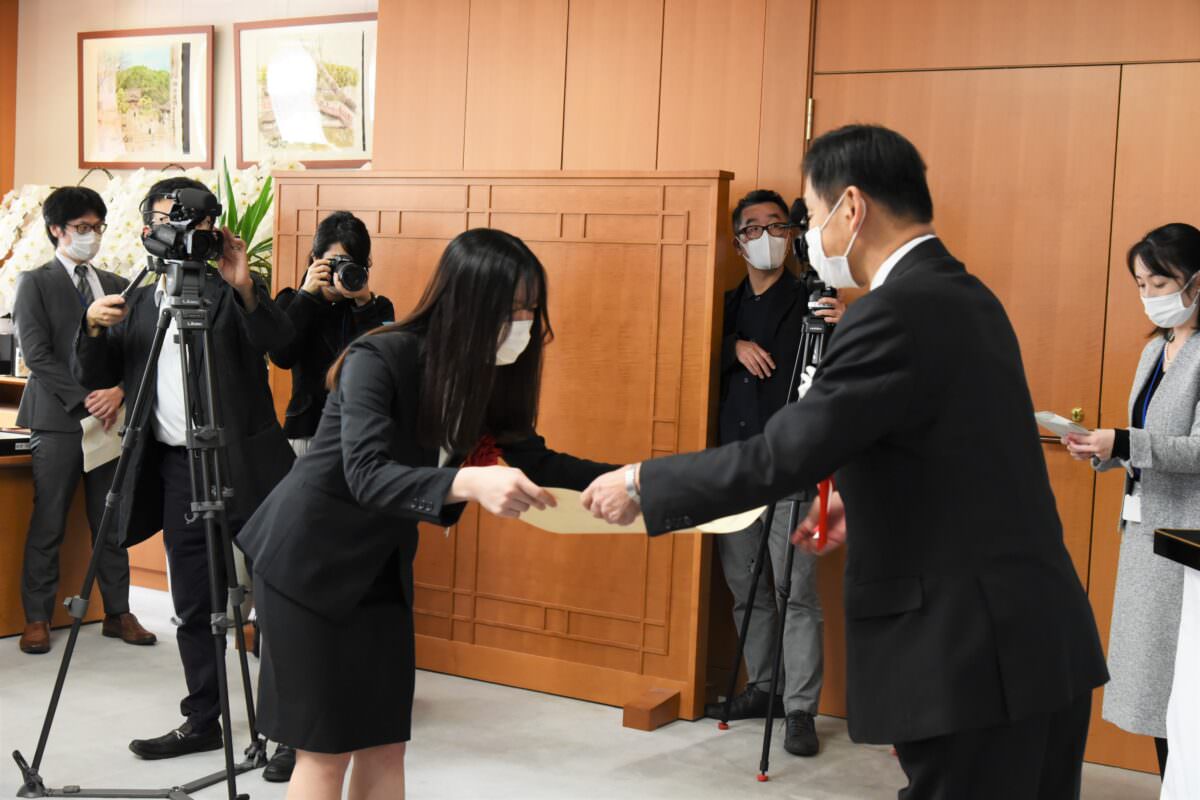 表彰状の授与は文部科学省の大臣室。藤本さんを含む全国の受賞者9名が参加しました。