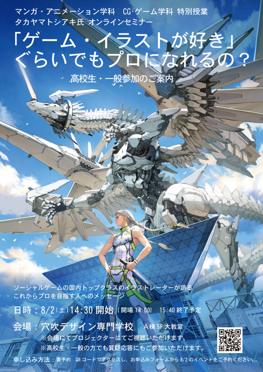 マンガ・アニメーション学科、CG・ゲーム学科の特別授業として、ソーシャルゲーム界トップクラスのイラストレーター、タカヤマトシアキ氏によるオンラインセミナーを実施します!