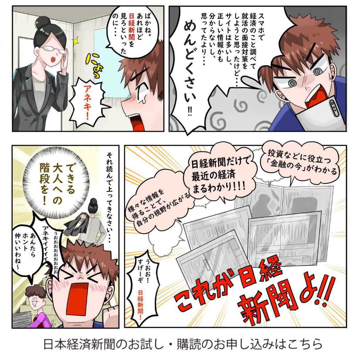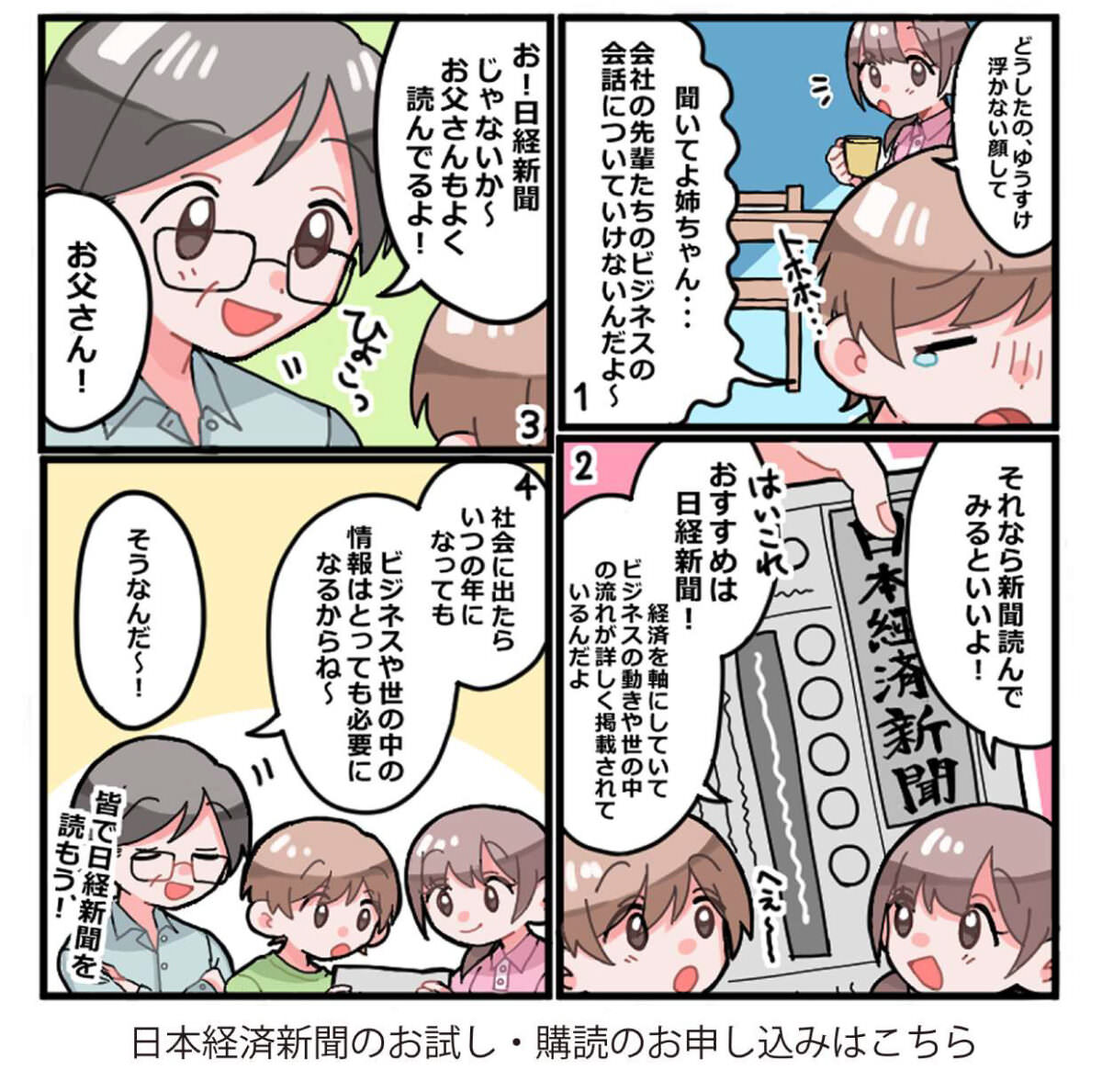 今回は自分ではなく、日本経済新聞社さんの伝えたいことを届ける漫画に挑戦しました。いつもと違う1ページだけの漫画。