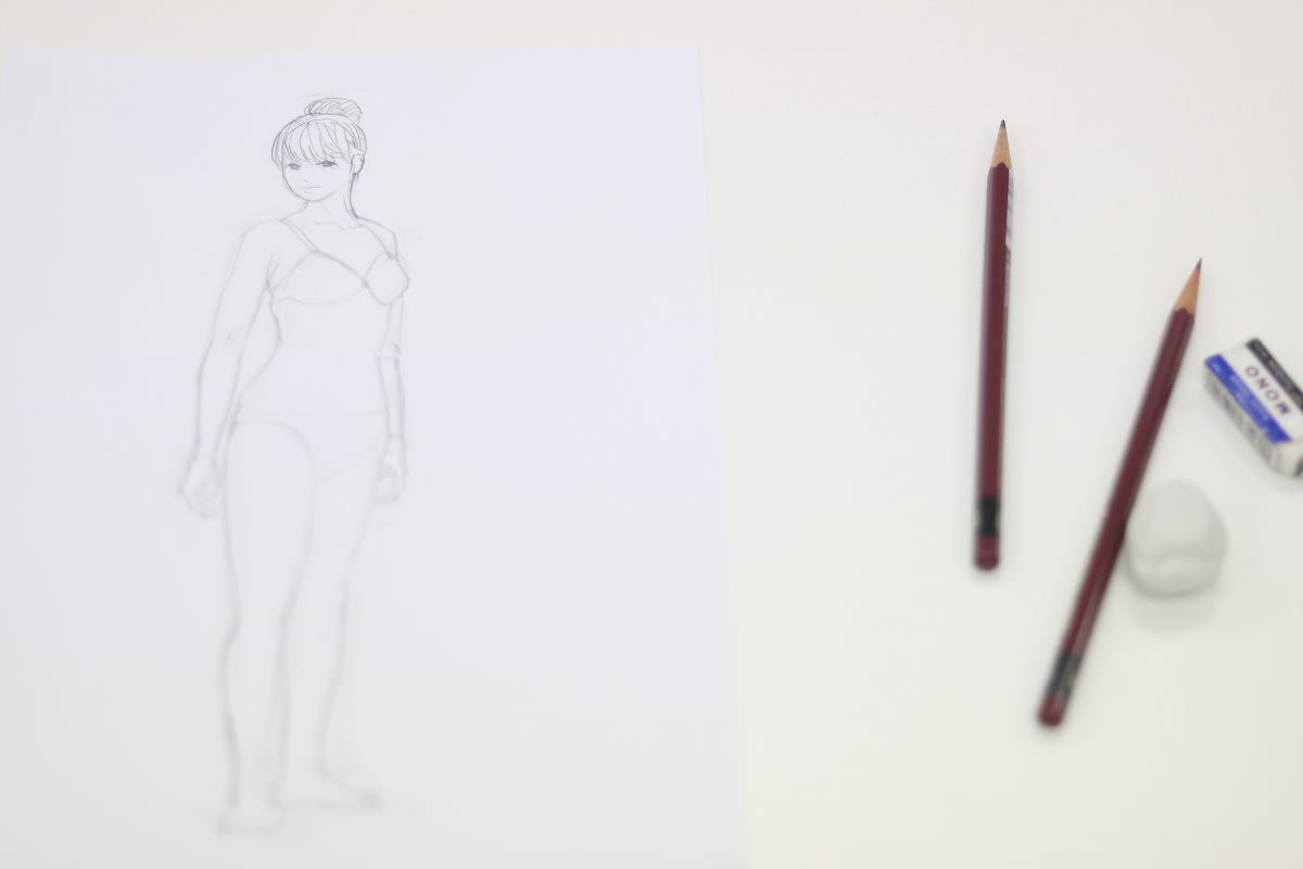 下書き4分、首から下4分、頭2分で10分で仕上げます。