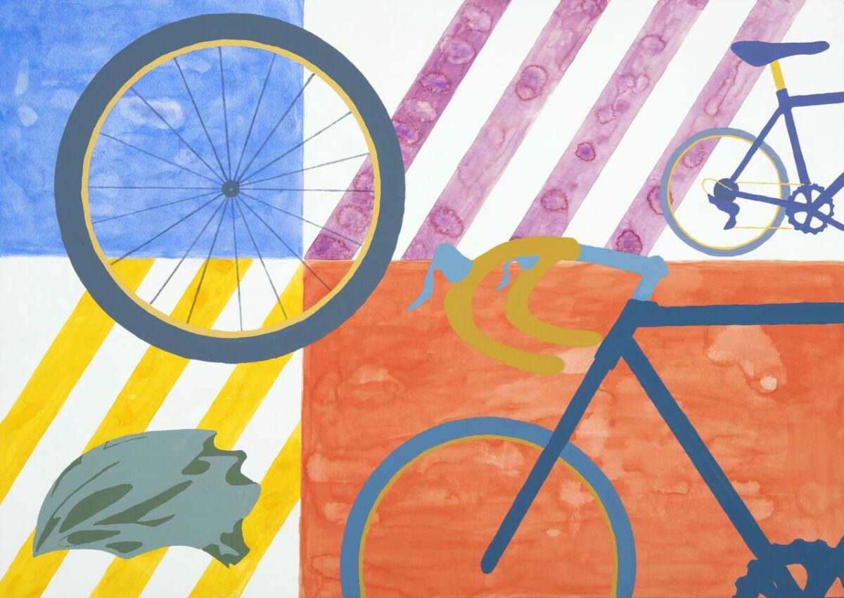 映像を観た時にロードバイクが引かれた線の上を走っているように見えたので描きました。
