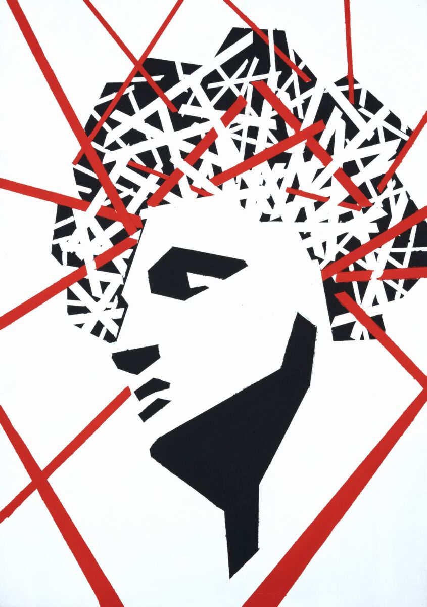 頭の中で複雑にからまる感情をシンプルな線で表現しました。