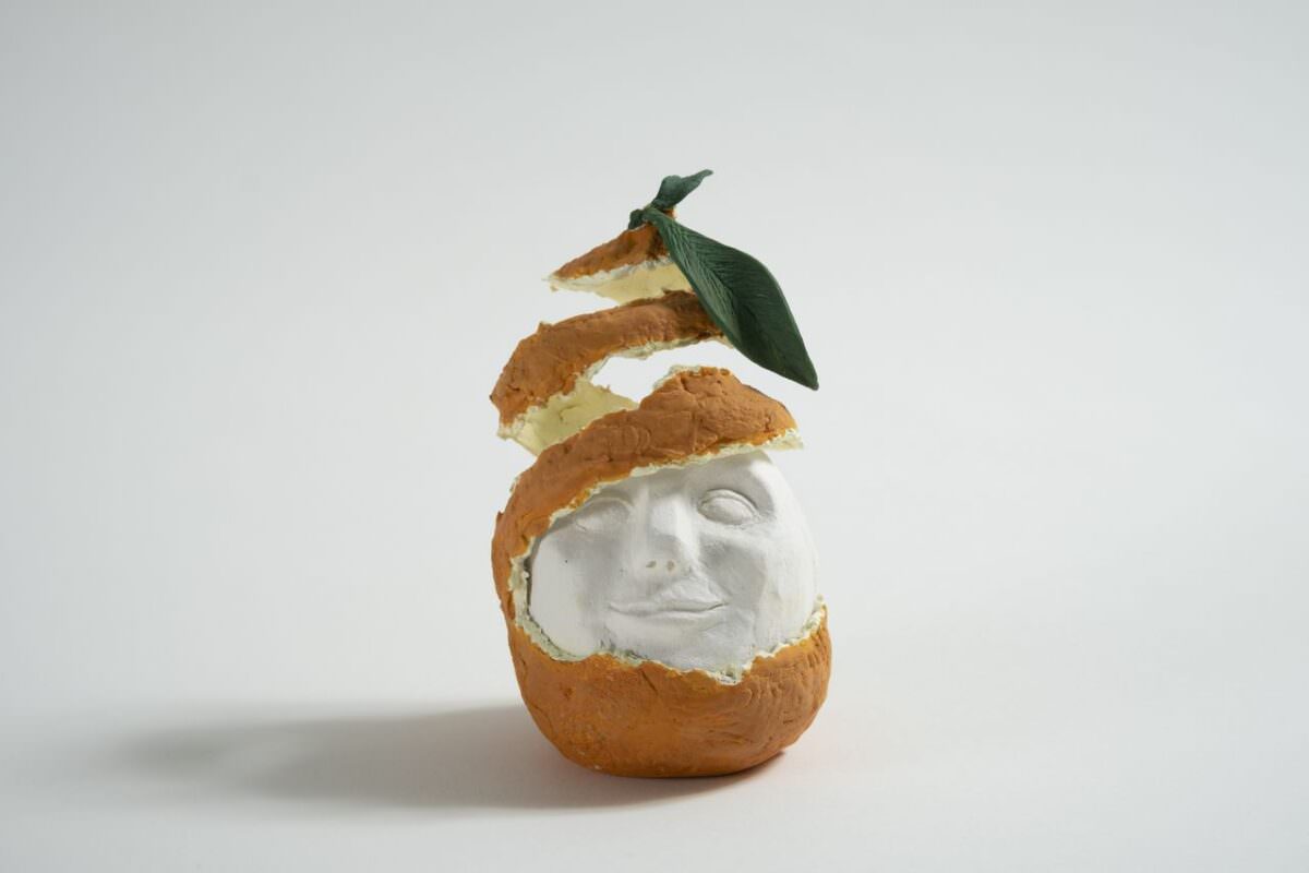 オレンジの皮が「ライン」としてむけていくことで、「素顔を解き放す」ことを表現している。