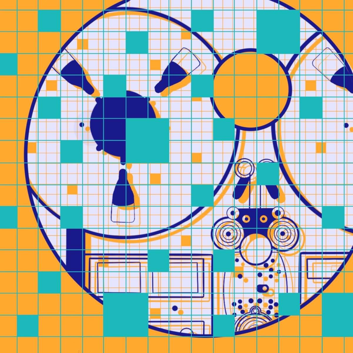 ラインをつなぐというテーマをもとに、電子音を方眼、それを奏でるオープンリールで、エレクトロニカルなメロディーラインを表現しました。