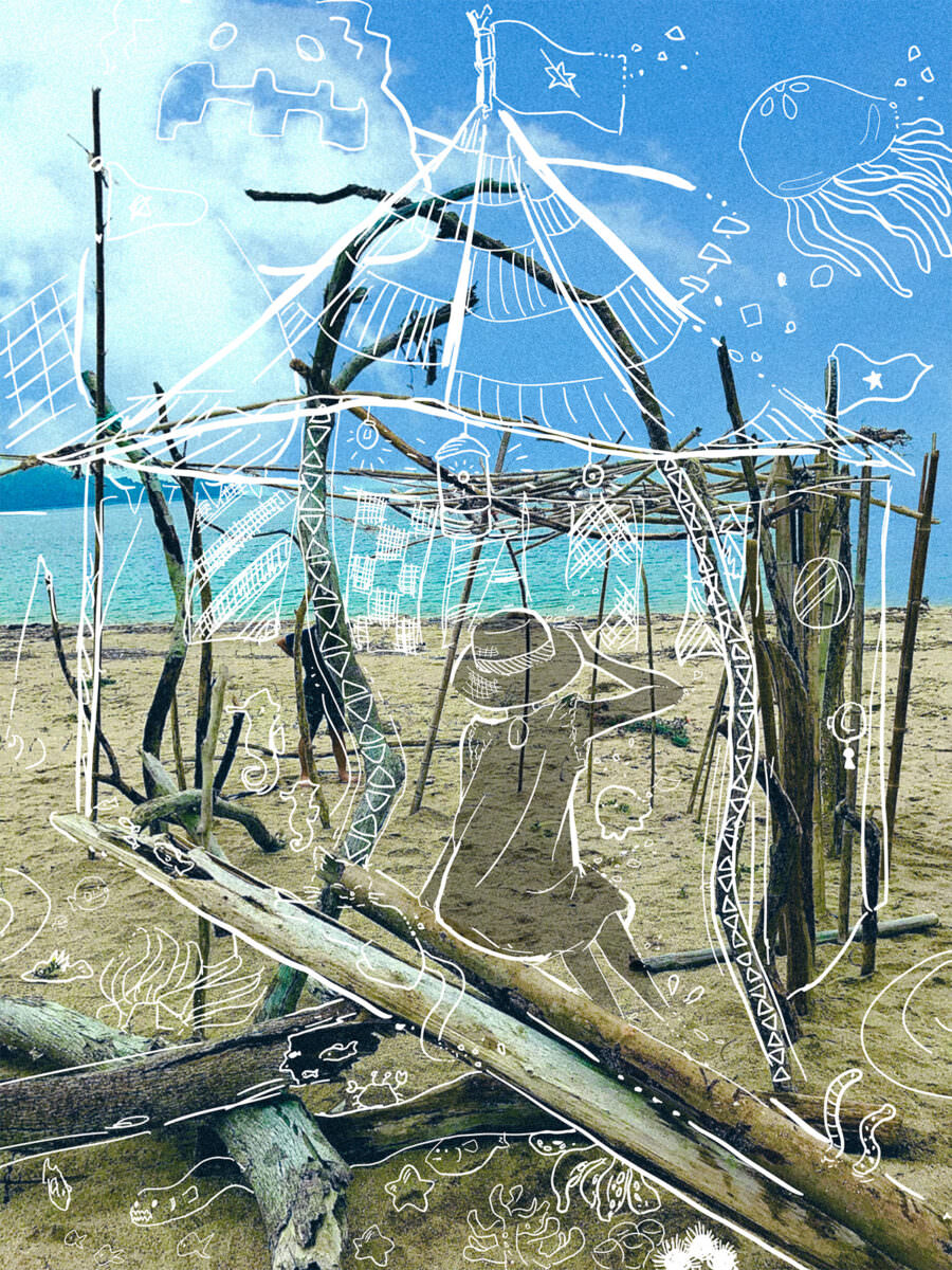 いろんな風景の輪郭を線(line)で表現しました。コロナ禍で行けなかった旅行にも電車や道のlineに沿って行けたらいいなという思いを込めています。