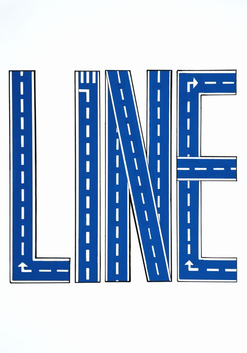 道路でLINEという文字を書きました。これは多くの人との関わりを意味しています。