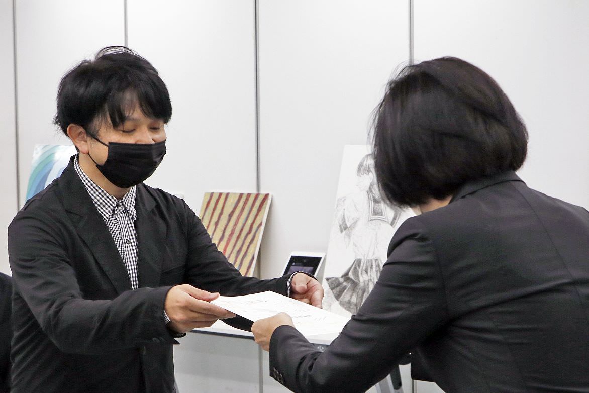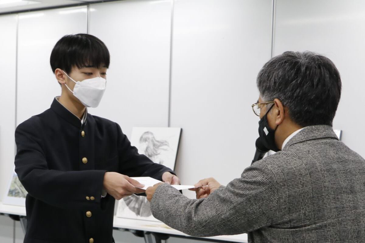 今年度の学校賞として選ばれたのは、出品作品のうち4点が入賞となった広島県立加計高等学校。高等学校を代表して、美術部 顧問 牧原 義英 先生に感謝状が授与されました。