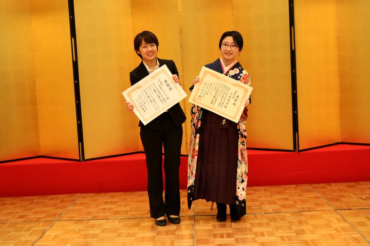 優秀な成績を修めた学生として、理事長賞をマンガ・アニメーション学科の河内 綾乃さん、校長賞をインテリアデザイン学科の長原 みずほさんが受賞しました。