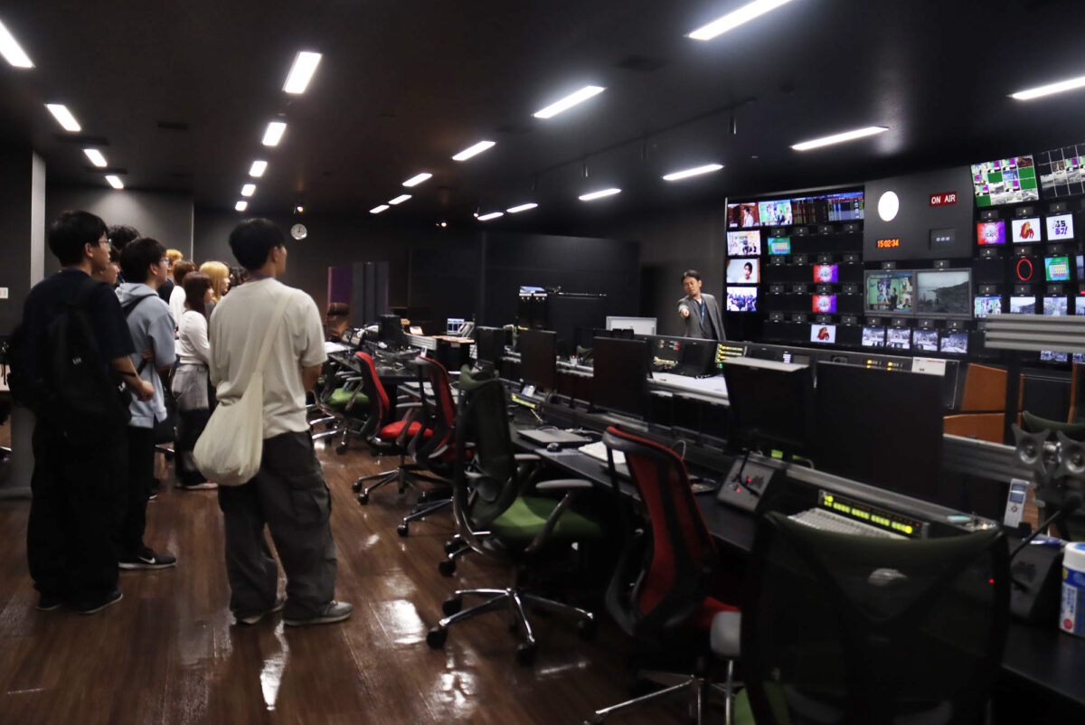 たくさんある機材をどのように使うのか、何人でカメラを回すのか、スタジオ内の環境など、テレビ番組の裏側を知ることができ、映像を専攻する学生にとって貴重な機会となりました。