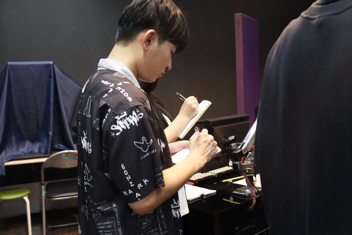 全員の音声録りが終了すると、その場で映像とのバランスを見て、在校生たちの意見を踏まえながら実際にCMで使用するナレーションを決定しました。