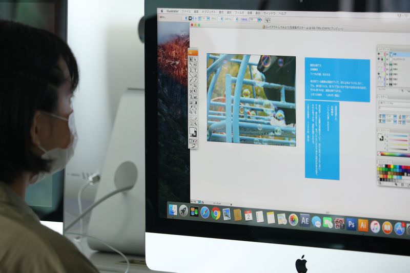写真集を宣伝するためのポスターを、レイアウトしてみましょう。プロの使うグラフィックソフトを体験します。