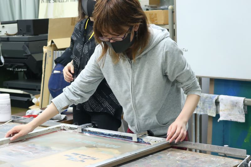 Tシャツやトートバッグなどにオリジナルデザインを印刷するシルクスクリーンの技法を体験します。