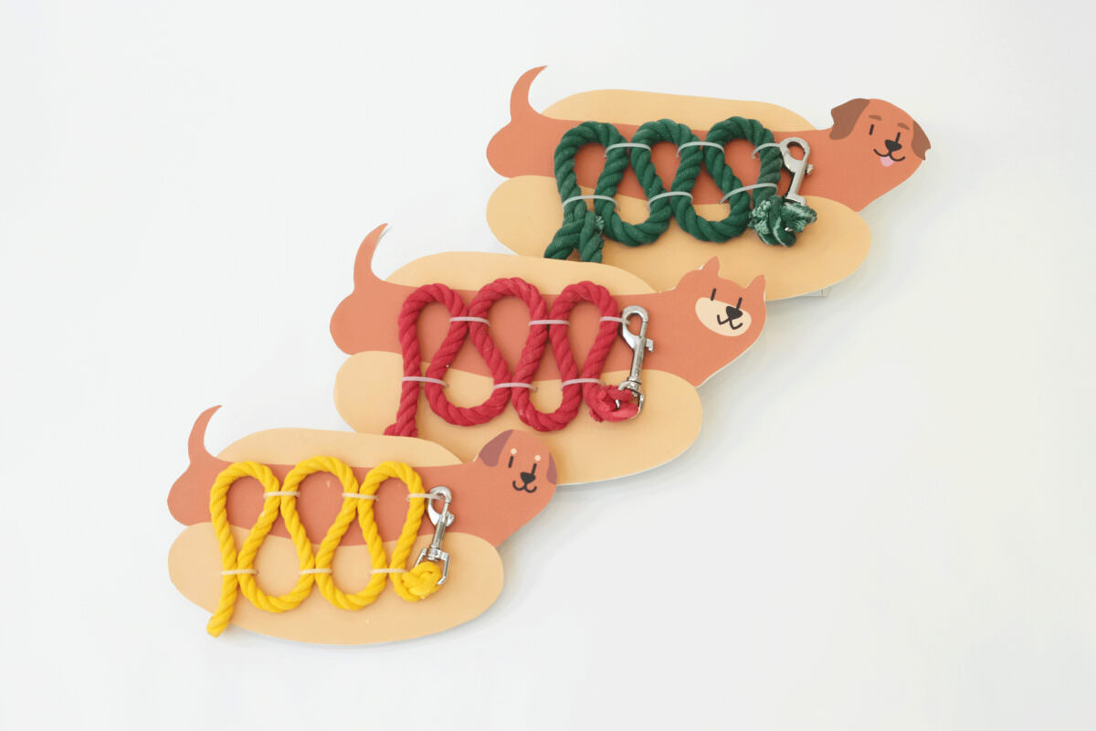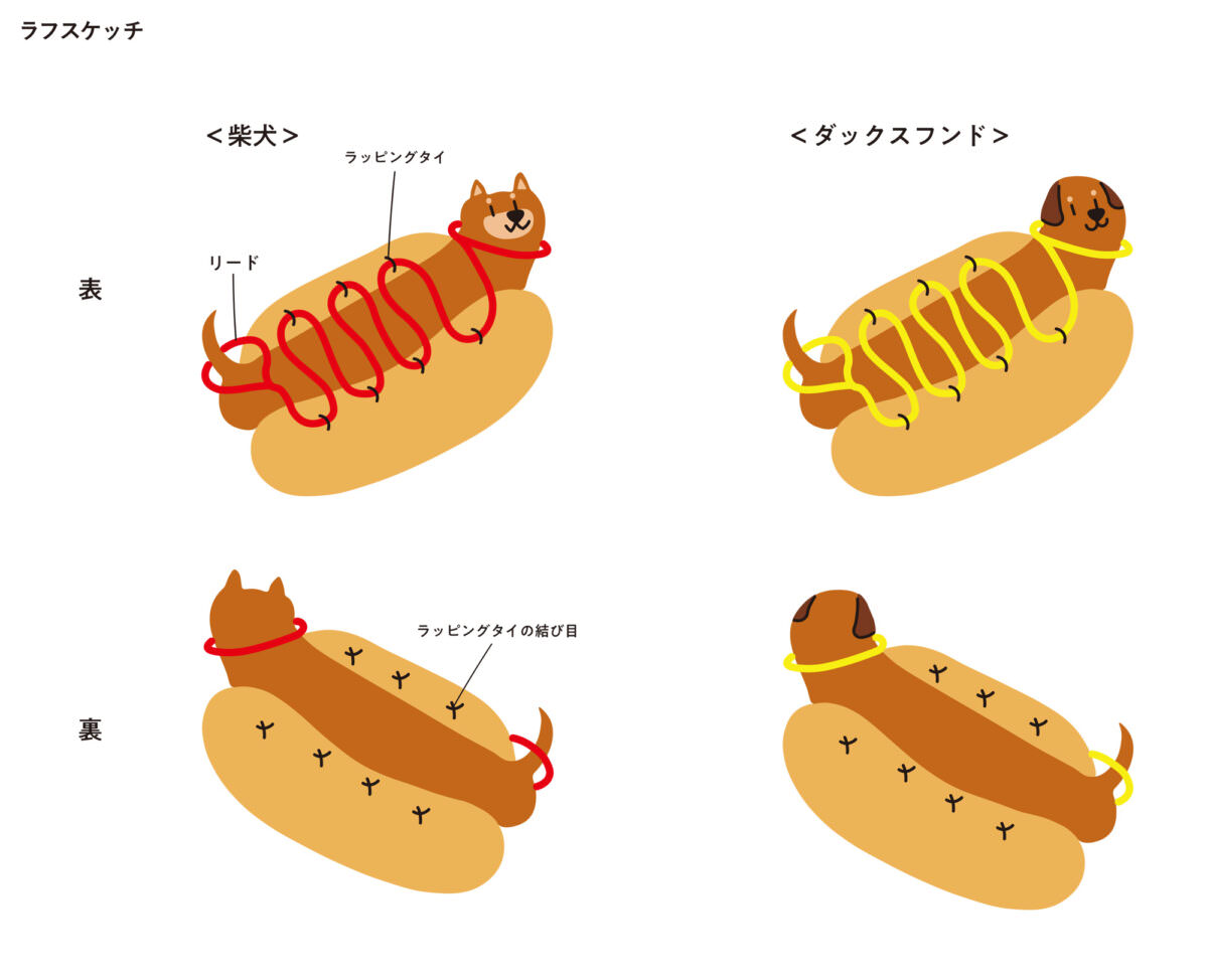 いろんな種類の犬を作ることによって、ホットドッグにかかってあるもの(リード)も違っていたら、様々な組み合わせが作れて可愛いと思いました。