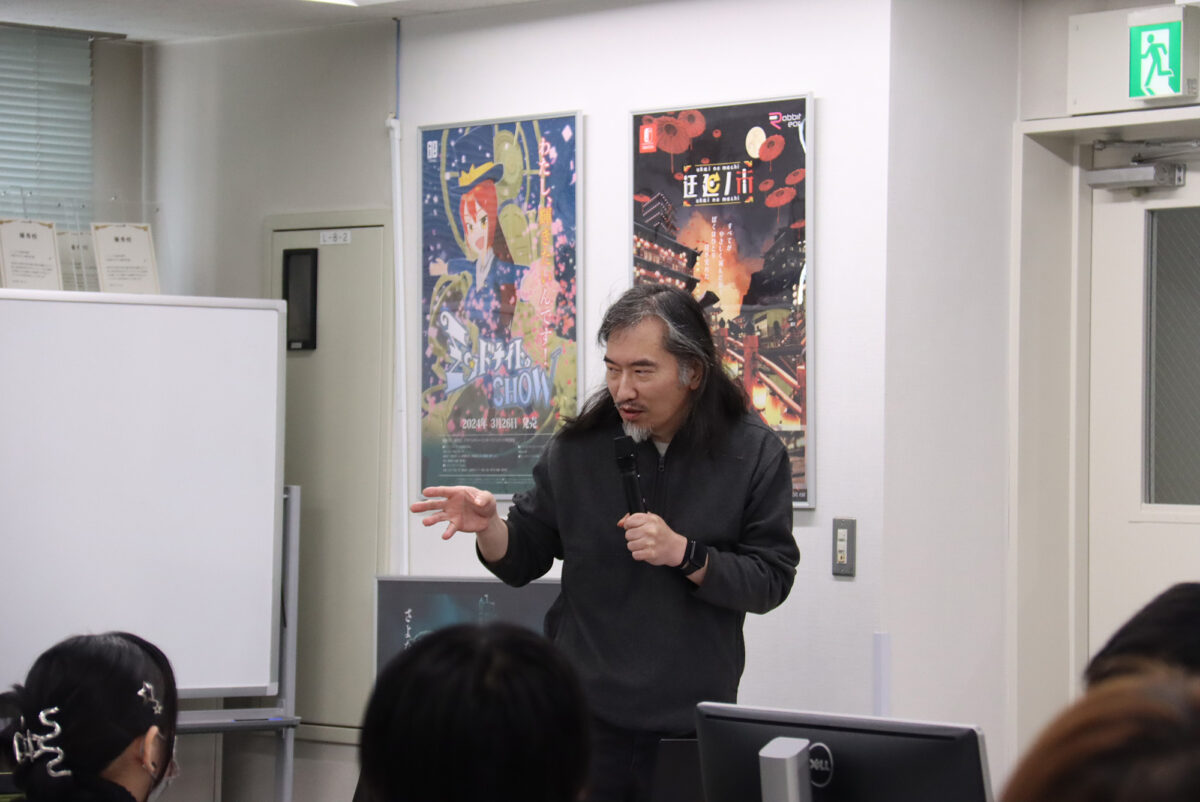 また、CG・ゲーム学科を担当される平田先生から、各々の成長がうかがえたと同時に、今後仕事していくうえでデータ管理の徹底や、作品の質を向上させるために計画性の大切さについてお話いただきました。