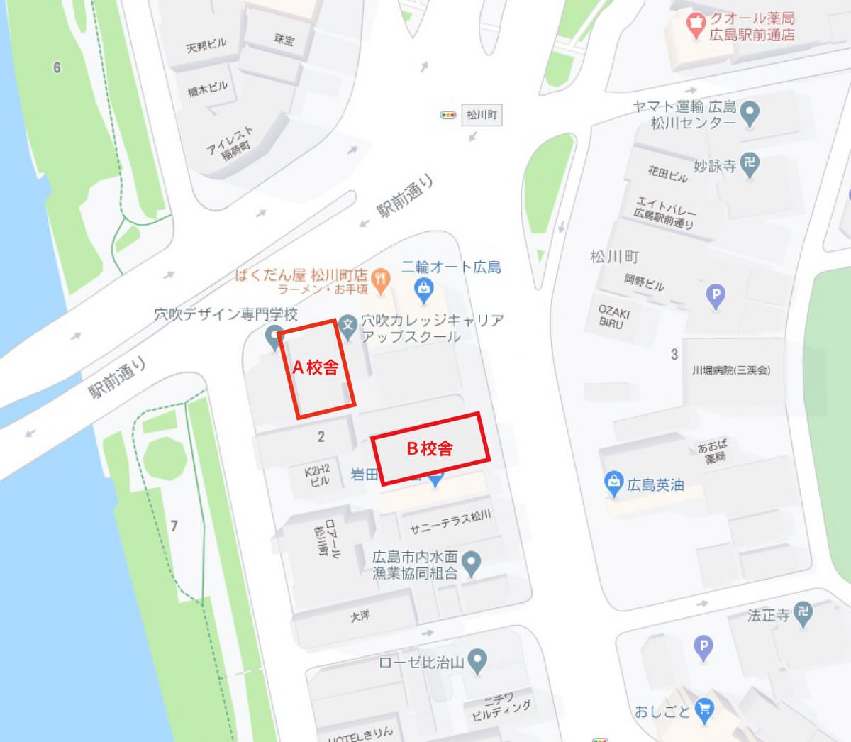 オリエンテーション日程に記載してある校舎は,それぞれ下記のとおりです。