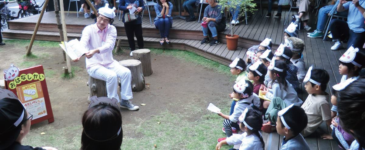 『いもむしパンフェア』 2018年10月6日〜11月11日 東京・日暮里にある、ひぐらしガーデンでの読み聞かせ風景